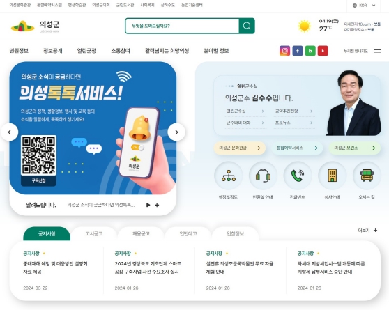 김주수 의성군수는“이번 홈페이지 개편을 통해 더 쉽고 편리하게 이용하며 소통할 수 있도록 이용자 중심의 홈페이지 운영에 애쓰겠다.”고 말했다.