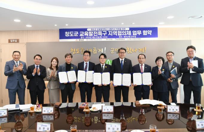 [뉴스서치] 청도군은 25일 청도군청에서 교육발전특구 시범지역 지정 및 운영을 위한 지역협의체를 구성하고 업무협약을 체결하였다.