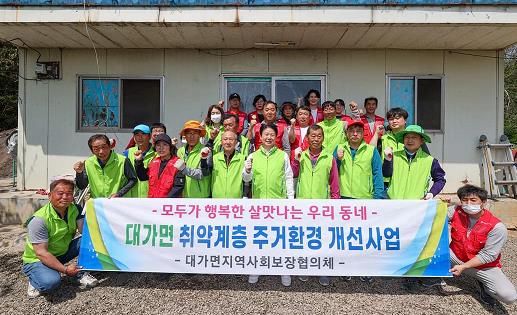대가면협의체 영농사업인 행복텃밭에서 수확한 벼 판매 수익금으로 관내 주거환경이 열악한 가정에 도배, 장판 및 싱크대 교체를 해주었고, 대가면협의체와 두레봉사단은 집안에 버려진 물건과 방치된 쓰레기를 처리했다.
