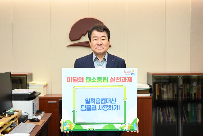 이번 5월의 실천 과제는‘일회용 컵 대신 텀블러 사용하기 (1회용품 줄이기)’로 김충섭 김천시장이 챌린지에 선도적으로 참여해 탄소중립 생활 실천에 적극 동참할 것을 당부했다.