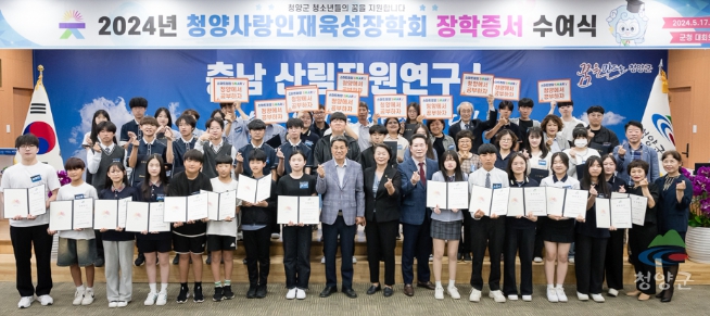 청양사랑인재육성장학회는 2012년부터 2023년까지 총 4,424명에게 장학금 34억여 원을 지급한 바 있으며, 올해는 검정고시 합격 장학금을 신설하고, 우수 신입생 국외 체험 연수 및 디딤씨앗통장 장학금 지원 등을 확대하며 인재 양성을 위한 장학사업을 꾸준히 추진하고 있다.
