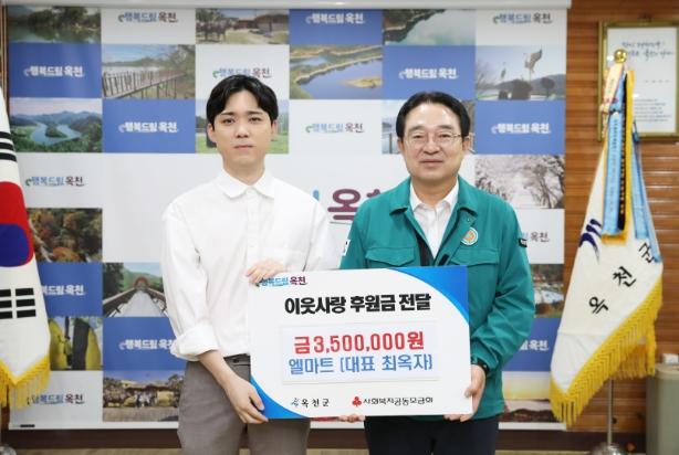 [뉴스서치] ㈜엘마트 옥천점(대표 최옥자)은 지난 17일 옥천군청을 방문해 옥천 지역사회공헌 프로그램의 일환인 ‘행복더하기 프로젝트’로 진행된 기부금 350만 원을 이웃사랑 후원금으로 기탁했다.