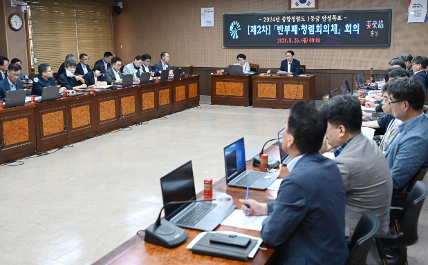 [뉴스서치] 홍성군이 청렴한 행정 구현을 위해 26일 제2차 반부패·청렴 회의체를 개최하고, 이용록 군수와 조광희 부군수를 비롯한 간부 공무원들이 모여 부패 리스크 관리에 대한 심도 있는 논의를 펼쳤다.