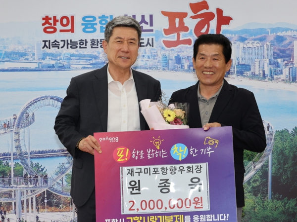 [뉴스서치] 포항시는 지난 11일 원종욱 재구미포항향우회장이 고향사랑기부금 200만 원을 포항시에 기탁했다고 밝혔다.