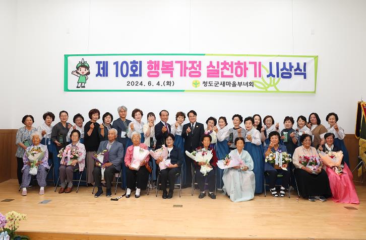 행복한 가정 실천하기는 청도군 새마을부녀회가 알뜰 나눔 장터 운영과 새마을 구판 사업 등 부녀회 주관 수익사업을 통한 수익금을 기금으로 재원을 마련하여 평소 타의 모범이 되는 3대가 함께 생활하는 효행 실천 가정 10가구를 새마을 부녀회원들이 직접 발굴하여 표창함으로써 가정의 달, 5월을 맞이하여 가정의 소중함과 효 문화 확산에 기여하고자 지난 2015년을 시작으로 하여 올해로 10회째를 맞이하고 있다.