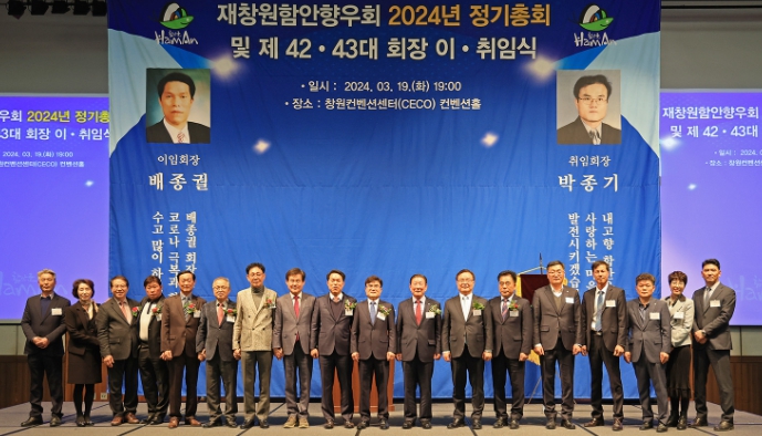 [뉴스서치] 재창원 함안향우회 정기총회 및 회장 이‧취임식이 19일 오후 7시 창원 컨벤션센터에서 조근제 함안군수를 비롯한 곽세훈 함안군의회 의장, 도‧군의원, 향우회 회원 등 250여 명이 참석한 가운데 개최됐다.