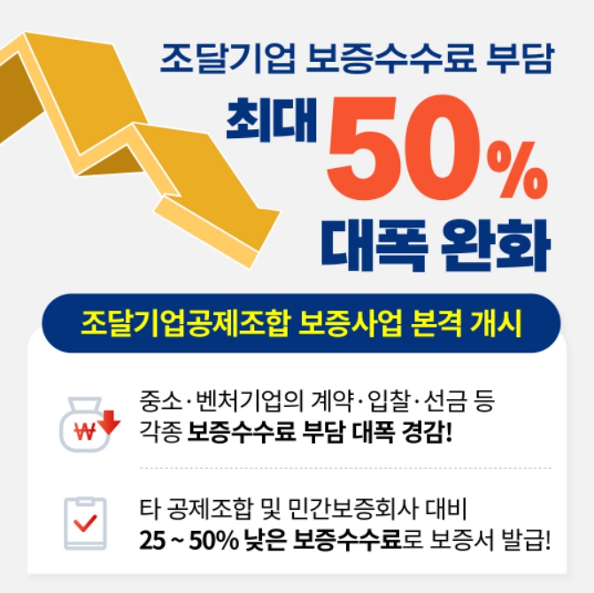 공제조합에 따르면, 조달기업은 조합의 보증상품을 통해 타 공제조합 및 민간보증회사 대비 최소 25% ~ 최대 50% 이상 낮은 보증수수료로 계약·입찰·선금 등의 보증서를 발급받을 수 있다.