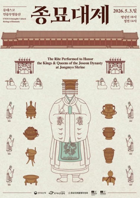[뉴스서치] 국가유산청은 산하 국가유산진흥원, 종묘대제봉행위원회와 5월 3일 오후 2시 종묘(서울 종로구)에서 '2026년 종묘대제'를 봉행한다.