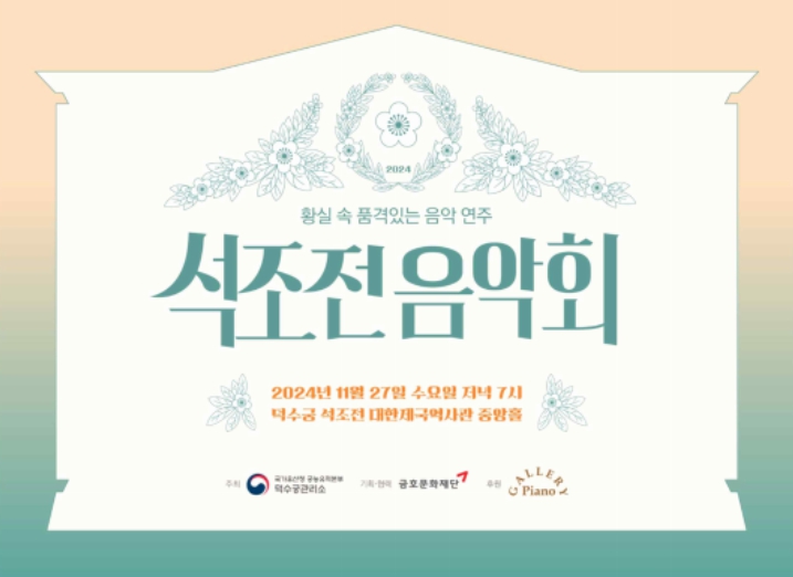 [뉴스서치] 국가유산청 궁능유적본부 덕수궁관리소는 금호문화재단과 함께 11월 27일 오후 7시 덕수궁 석조전(서울 중구)에서'2024년 하반기 석조전 음악회'를 개최한다.