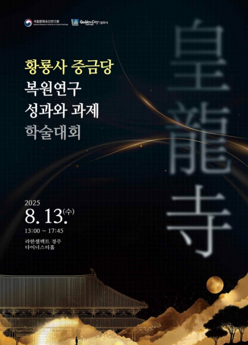 [뉴스서치] 국가유산청 국립문화유산연구원은 8월 13일 오후 1시 라한셀렉트 경주 다이너스티홀(경북 경주시)에서 '경주 황룡사 중금당 복원연구 성과와 과제'를 주제로 학술대회를 개최한다.