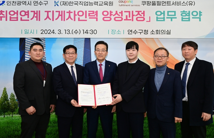 이를 위해 지난 13일 연수구청에서 한국직업능력교육원, 쿠팡풀필먼트 인천 물류센터와 업무협약(MOU)을 체결했다.