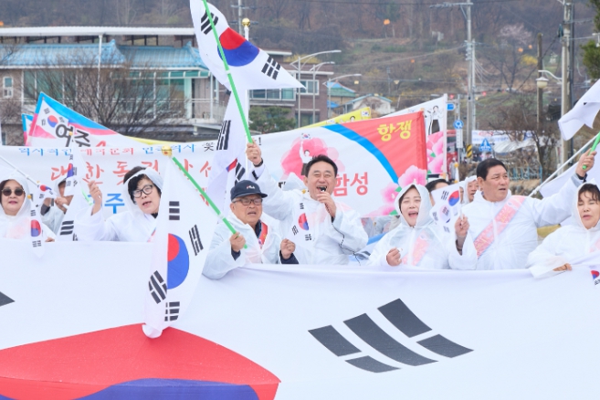이날 1부 기념식은 박근출 회장의 기념사를 시작으로 내빈 축사, 독립선언서 낭독 및 기념공연, 3.1절 노래 제창, 참석자 전원의 만세삼창으로 마무리됐으며, 2부에는 비가 오는 날씨에도 불구하고 지역주민 250여명이 태극기를 손에 쥐고 105년전 그날의 함성을 재현하며 행진했다.