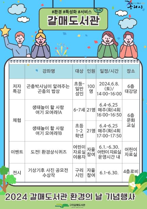 [뉴스서치] 구리시 갈매도서관은 6월 5일 환경의 날을 기념해 6월 한 달 동안 다채로운 문화행사를 운영한다.