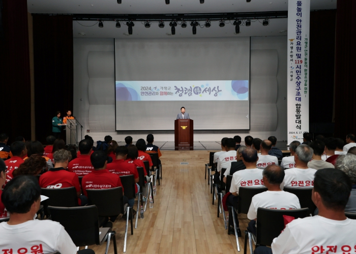 군은 17일 음악역1939 1층 대강당에서 가평소방서와 함께 ‘2024년 물놀이 안전관리요원 및 119시민수상구조대 합동발대식’을 개최했다고 밝혔다.