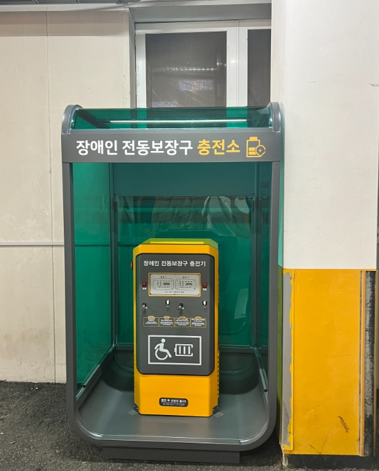 이에 구는 장애인들이 이동 중 배터리 방전으로 불편을 겪지 않도록 24시간 이용할 수 있는 공공건물에 전동보조기기 충전기를 설치했다.