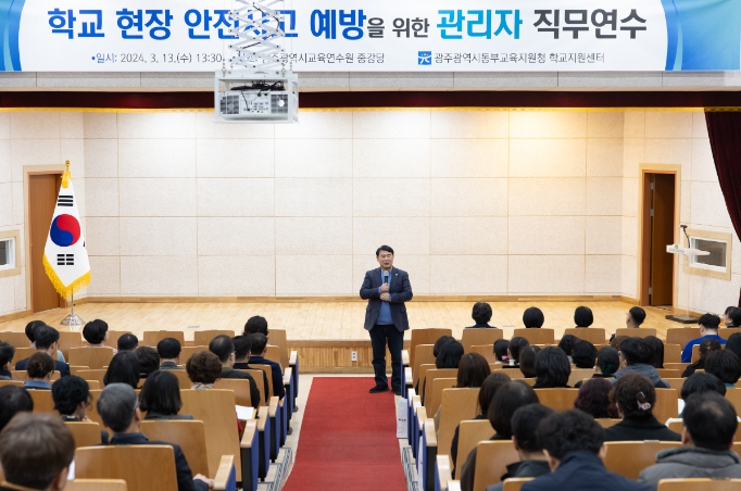 [뉴스서치] 광주광역시동부교육지원청이 13일 광주교육연수원에서 학교장과 행정실장 190명 대상 학교 현장 안전사고 예방을 위한 관리자 직무연수를 개최했다.