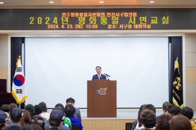 [뉴스서치] 민주평화통일자문회의 인천서구협의회는 지난 23일 서구청 지하 대회의실에서 자문위원, 여성사회단체 회원 및 지역주민, 서구청장, 서구의회의장 등 160여 명이 참석한 가운데 ‘2024년 평화통일 시민교실’을 개최했다.