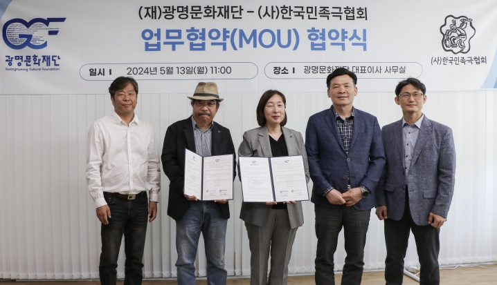 [뉴스서치] (재)광명문화재단은 (사)한국민족극협회와 함께 5월 13일 오전 11시에 광명시민회관 대표이사 사무실에서 '지역 축제 발전을 위한 업무협약'을 체결했다.