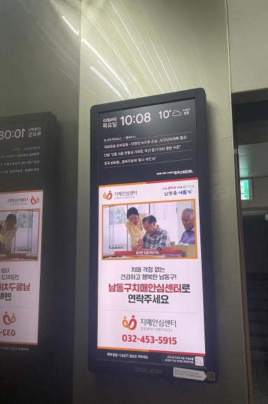 [뉴스서치] 인천시 남동구 치매안심센터는 지역 내 아파트 100개 단지 엘리베이터에 설치된 총 1,440대의 미디어 보드(모니터)를 활용해 치매 지원 사업과 치매 인식개선에 대해 홍보를 실시한다고 9일 밝혔다.