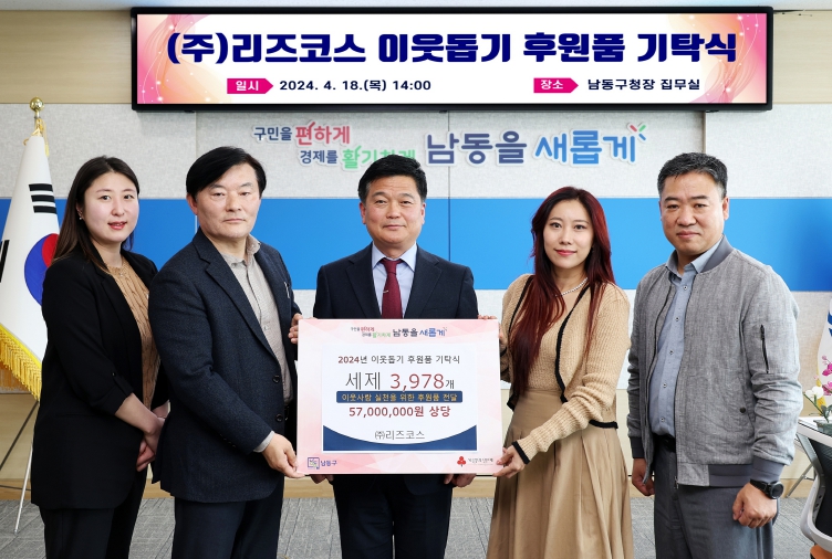 ▲ ㈜리즈코스, 남동구에 어려운 이웃을 위한 후원품 기탁 |