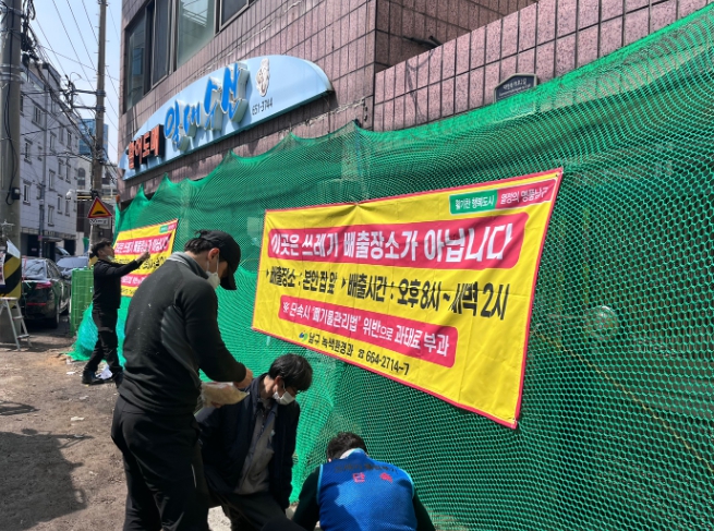 남구 녹색환경과는 지난 3월 27일 오전 10시 30분 대명복개로 16 일원(대명10동)에서 새봄을 맞아 집중 환경정비 활동을 펼쳐 각종 폐기물이 무단으로 방치되어 주민들이 크게 불편함을 겪던 지역의 골목길에 방치되고 있던 쓰레기(10톤) ・폐타이어(90개)등을 건설과와 합동하여 수거했으며 무단투기를 예방하기 위한 구조물을 설치하는 등 대대적인 환경정비 및 대청소 활동을 실시했다.