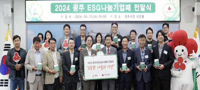 [뉴스서치] 광주시는 지난 21일 시청 비전홀에서 지역사회를 위해 기부를 실천한 17개 기업에 ESG(환경·사회·지배구조) 나눔 기업 인증패를 전달했다.