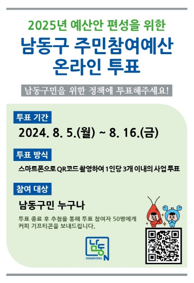 ▲ 남동구, 내년도 예산 편성을 위한 주민참여예산 온라인 투표 실시 |