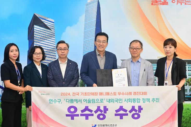 [뉴스서치] 연수구가 내외국인 상생을 위한 정책 제언으로 '2024 전국 기초단체장 매니페스토 우수사례 경진대회'에서 사회적 불평등 완화 분야 우수상을 수상했다.