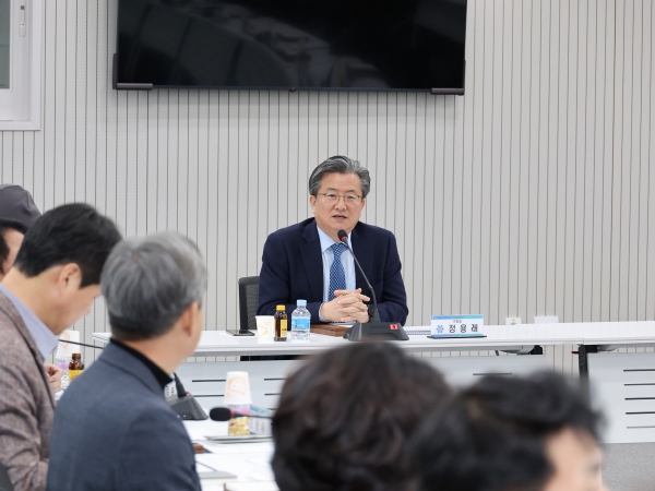 ▲ ‘주요하천 특화계획 수립용역 최종보고회’를 개최한 가운데 정용래 유성구청장이 회의를 주재하고 있다. |