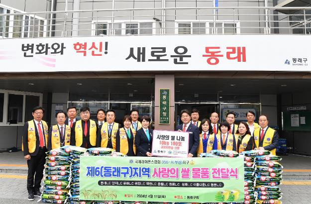 [뉴스서치] 부산 동래구는 지난 11일 국제라이온스협회355-A(부산)지구 제6지역클럽 임원 일동으로부터 저소득 취약계층을 위한 성품(백미100포, 330만 원상당)을 전달받았다고 밝혔다.