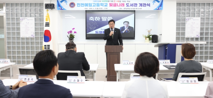 [뉴스서치] 도성훈 인천광역시교육감은 13일 인천예일고등학교 도서관 빛글나래 개관식에 참석해 도서관 시설을 둘러보고 학생, 학부모, 지역주민과 소통했다.