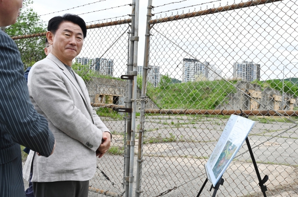 김동근 시장은 5월 7일 주한미군 관계자들과 고산동 소재 캠프 스탠리를 방문해 시설물을 둘러본 후 공여지 반환에 대해 심도있게 논의했다.