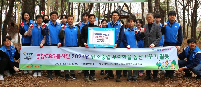 [뉴스서치] 경창산업(주)은 제79회 식목일을 맞아 달서구에서 주최하는‘우리마을 동산가꾸기 나무심기 행사’에 직원들로 구성된 C·S봉사단 20명이 참여하며, 이웃사랑 후원금 200만원도 함께 전달했다.