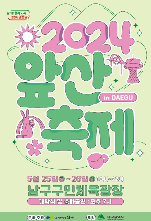 [뉴스서치] 대구 남구는 오는 5월 25일부터 5월 26일까지 양일간, 남구구민체육광장 일원에서 ‘2024 앞산축제’를 개최한다고 17일 밝혔다.