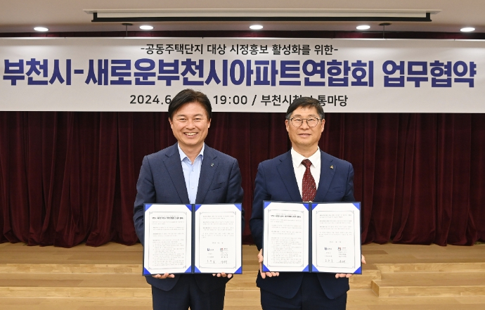 시는 지난 5일, 11일 부천시청 소통마당에서 새로운부천시아파트연합회·부천시아파트총연합회와 ‘공동주택 대상 시정홍보 활성화를 위한 업무협약’을 각각 체결했다.