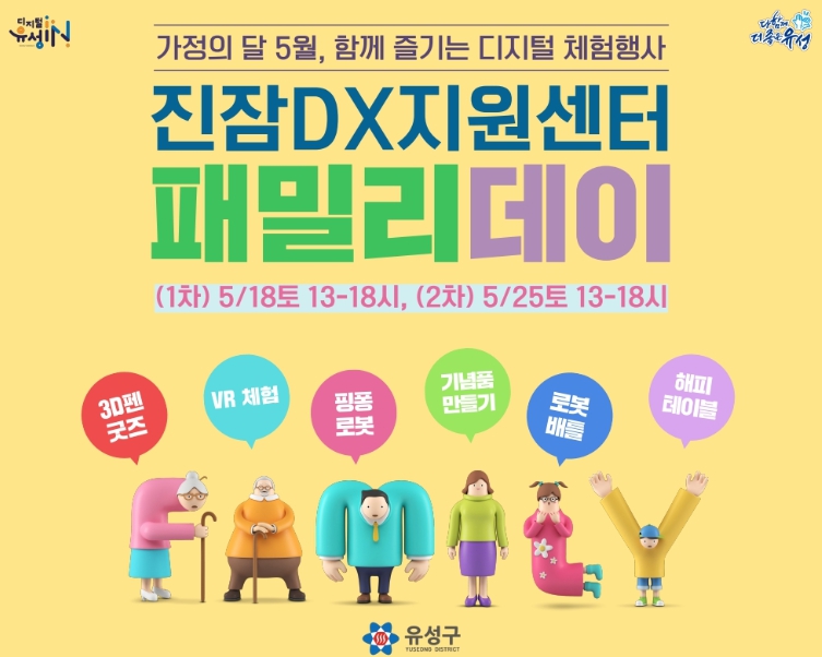 한편 유성구는 작년 7월 진잠도서관 1층에 진잠DX센터를 개소해 주민 디지털교육과 체험 상설 공간으로 운영 중이며, 5월 가정의 달을 맞아 가족이 함께 즐기는 특별한 주말 체험행사를 마련했다.
