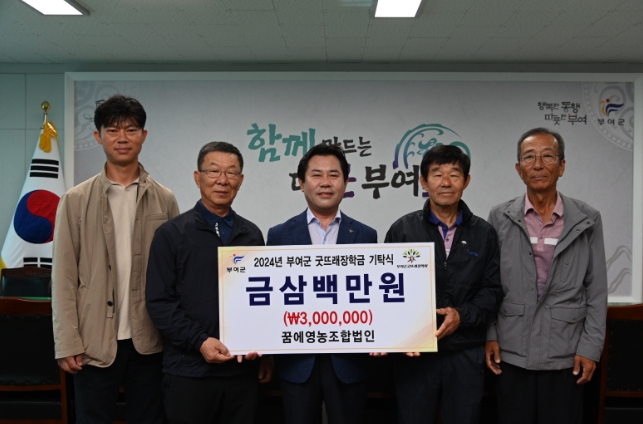 [뉴스서치] 꿈에영농조합법인은 지난 1일 부여군청을 방문하여 인재 육성을 위한 장학금 300만원을 부여군굿뜨래장학회(이사장 박정현)에 기탁했다.