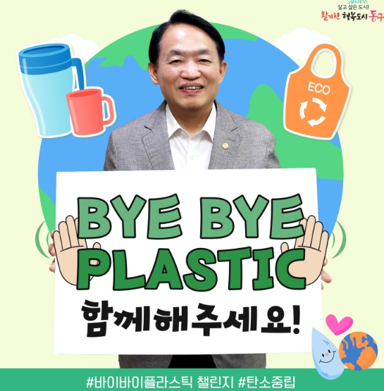 [뉴스서치] 김찬진 동구청장이 플라스틱 사용 줄이기 범국민 캠페인 ‘바이바이 플라스틱(ByeBye Plastic·BBP) 챌린지’에 동참했다.