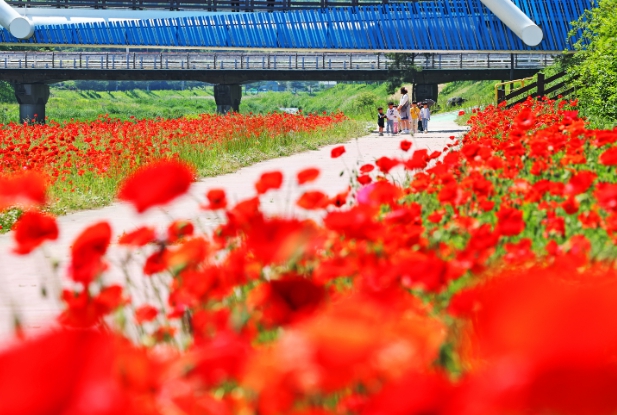 올해 처음 시도한 빨간맛 페스티벌의 백미인 동진천과 성황천 변 100만 송이 꽃양귀비 장관과 어우러진 금계국 및 백일홍, 메리골드 등은 인생사진 명소로 각광받았다.