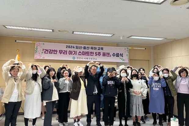 [뉴스서치] 천안시 서북구보건소는 지난 3일 ‘제1기 건강한 우리 아기 스마트한 5주 플랜’이라는 주제로 임신·출산·육아교실 수료식을 가졌다.