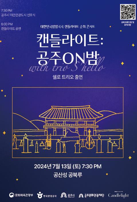 이날 공연에는 클래식 연주 그룹 쉘로 트리오가 출연해 아름다운 선율로 유네스코 세계유산인 공산성의 밤을 밝힐 예정이다.