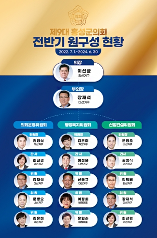 [뉴스서치] 제9대 홍성군의회 군의원들의 공식적인 회기 일정이 6월 20일 제304회 제1차 정례회를 폐회함으로써 전반기 의정활동을 마무리했다.
