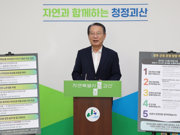 [뉴스서치] 송인헌 괴산군수가 24일 괴산군청 브리핑룸에서 민선8기 2주년을 맞아 기자회견을 가졌다.