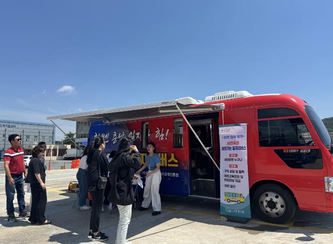 충남경제진흥원과 연계한 ‘찾아가는 일자리버스’는 관내 경제활동인구의 감소와 빈일자리율 증가에 따라 지역인재 및 구직단념자를 발굴해 구인·구직 매칭 등 취업을 지원하는 사업이다.