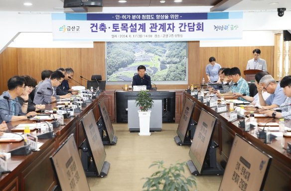 박범인 금산군수를 비롯해 관내 건축‧토목설계소 대표, 담당 공무원 등 30여 명은 이날 인‧허가 업무처리와 관련된 의견을 듣고 개선방안을 논의했으며 행정 효율성 향상을 위한 민관 협력을 이어나가기로 했다.