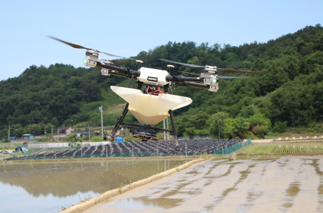 특히, 드론직파는 파종 및 육묘작업이 생략되고 이앙·시비·제초·병충해방제에 소요되는 노동력이 기존보다 절반가량 줄일 수 있다.