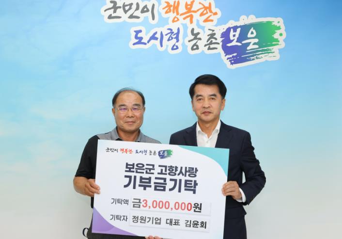 ▲ 보은군 정원기업 김윤회 대표, 보은군에 고향사랑기부제 300만 원 기탁 |