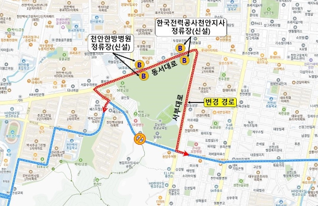 이번 노선 변경은 한국전력공사 천안지사와 대전대학교 천안한방병원 등의 공공기관과 병원을 찾는 시민의 편의성 향상을 위해 추진됐다.