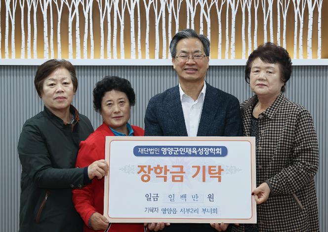 [뉴스서치] 영양읍 서부2리 부녀회은 4월 19일 (재)영양군인재육성장학회를 찾아 1백만 원을 장학금으로 전달하였다.