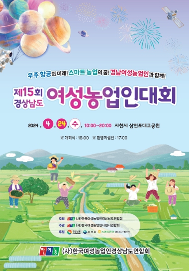 [뉴스서치] (사)한국여성농업인 사천시연합회가 주관하는 제15회 경상남도 여성농업인대회가 오는 24일 사천시 삼천포대교공원에서 열린다.